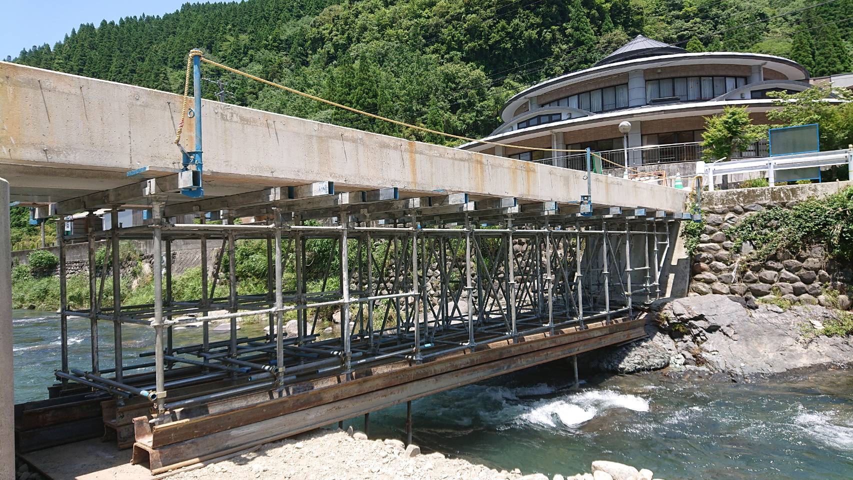 八女市 橋撤去に伴う足場工事
